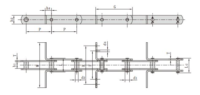 | 鏈條型號 | G | F | W | K | h4 | h2 | d4 | T |
