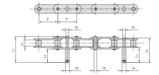 不銹鋼雙節距加長軸輸送鏈