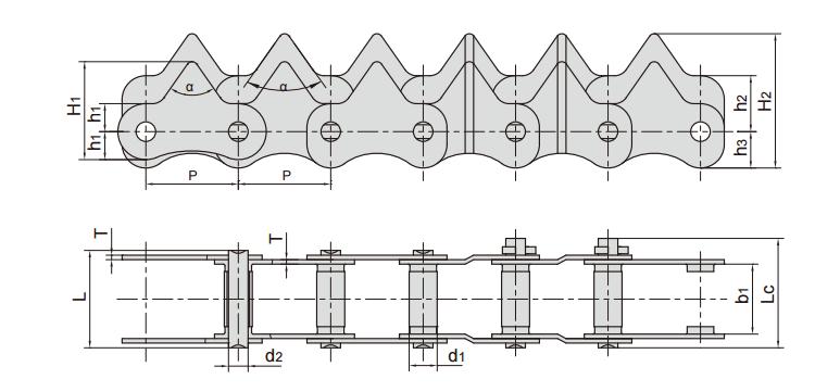 鏈號 節距 滾子直徑 內節內寬 銷軸直徑 銷軸長度 齒形角 鏈板厚度 鏈板尺寸 抗拉強度 平均抗拉強度